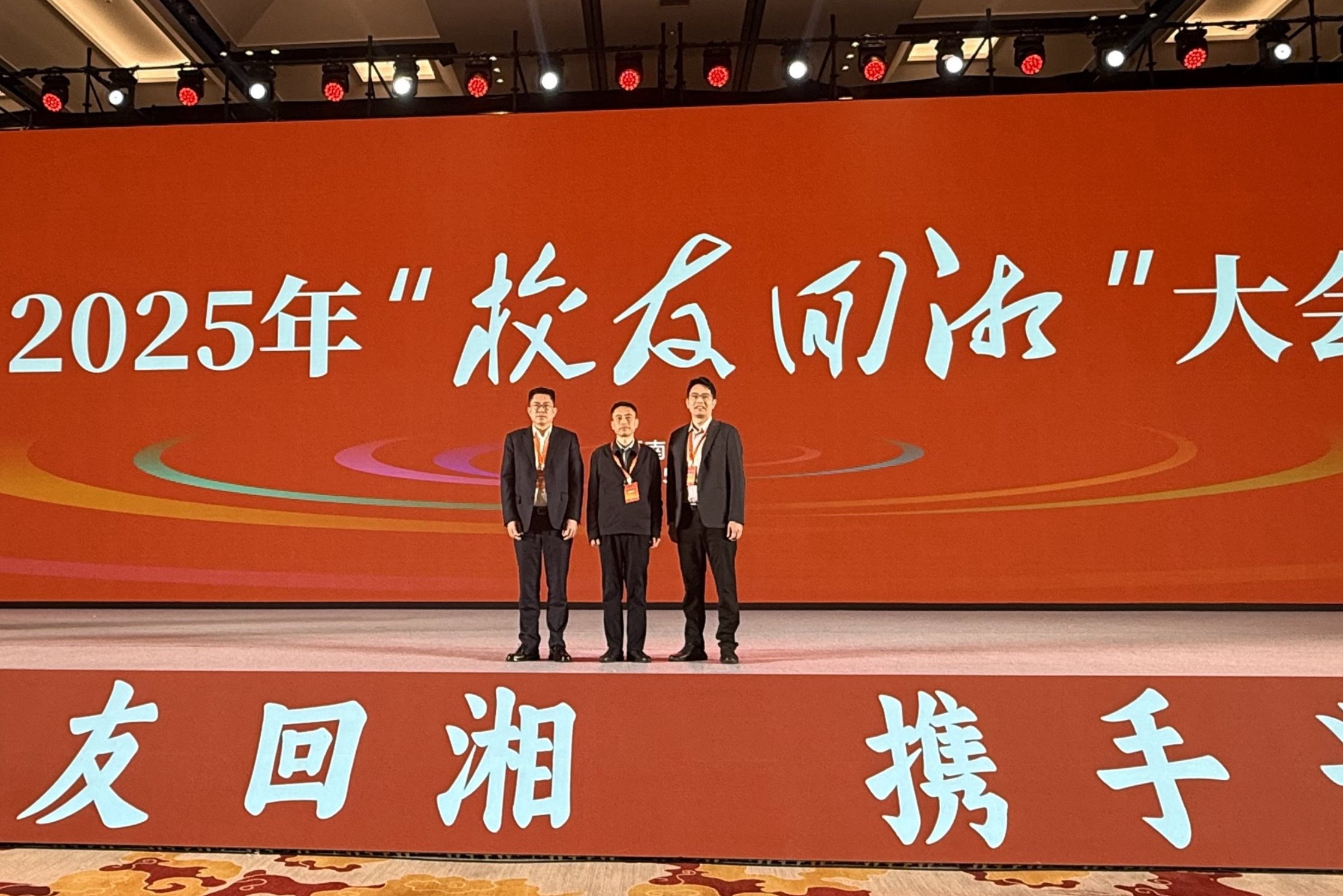 校党委书记张国云与校友卢灿生(左)、周贤斌(右)合影校党委书记张国云与校友曾铁山合影校园网讯 12月2日,2025年“校友回湘”大会在长沙举行。千余名湖湘校友欢聚湘水之畔,聚湖湘校友合力,绘三湘振兴蓝图。学校党委书记张国云出席,广东美尼能源有限公司董事长、化工学院校友卢灿生,华商律师事务所党委书记、法学院校友曾铁山,广东华峪实业发展有限公司董事长、土建学院校友周贤斌三位校友参加本次大会。省委副书记、省...