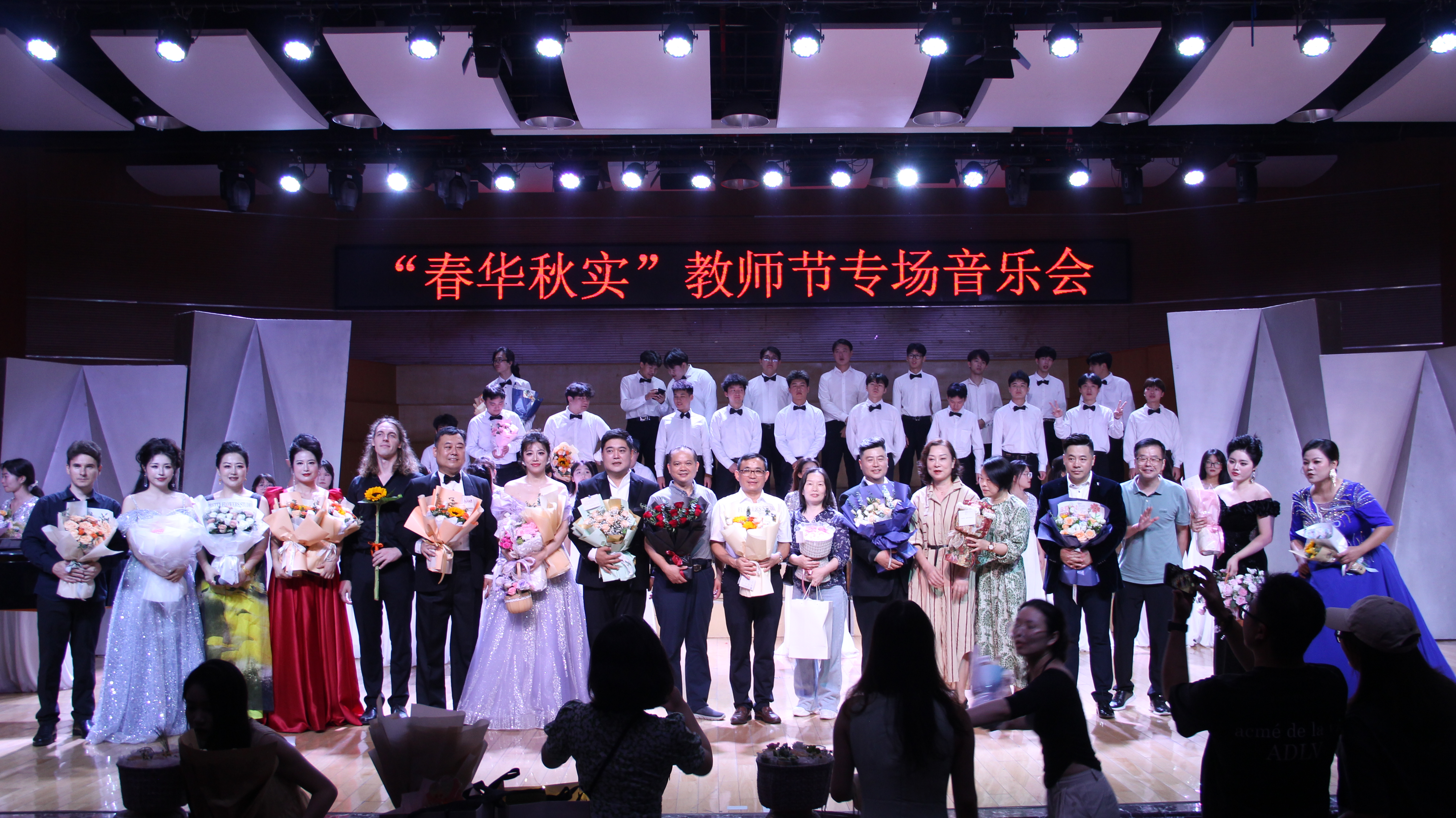 校园网讯.“春天的花开了,老师我想你,你的恩泽如绵绵细雨滋润我心底;夏天的蝉叫了,老师我想你,你的教诲似凉爽的风轻拂我耳际……”9月10日晚,悠扬的旋律从音乐厅传出,由音乐学院主办的“春华秋实”教师节专场音乐会举行。校党委书记张国云,党委委员、纪委书记谢贵辉出席活动。本场音乐会由11个节目组成。音乐会在《长大后我就成了你》《来生来世把你爱》中拉开序幕,其深情的歌词和动人的旋律,无不诉说着学生们对老师...