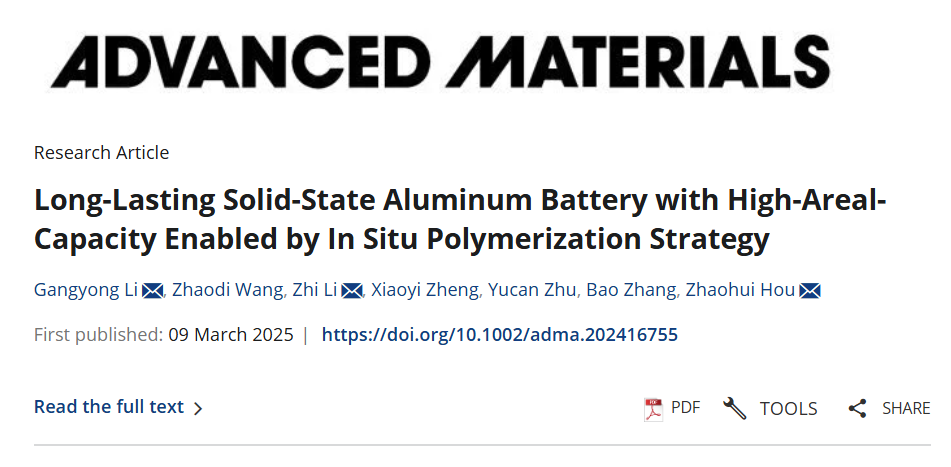 校园网讯近日,贝博先进碳基功能材料湖南省重点实验室侯朝辉教授团队在材料和化学领域的国际传统顶级期刊《Advanced Materials》(自然指数期刊,中科院一区,影响因子:27.4)在线发表了题为“Long-Lasting Solid-State Aluminum Battery with High-Areal-Capacity Enabled by In Situ Polymerization Strategy”的高水平研究论文。贝博为该论文的第一完成单位,化学化工学院青年教师李刚勇博士为第一作者和通讯作者,李芝博士...