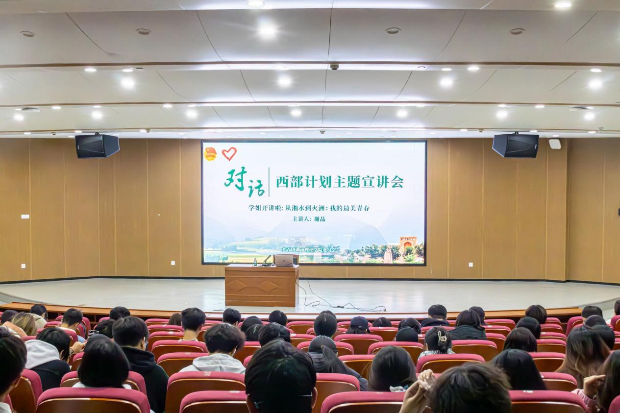 校园网讯 近日,校团委启动了“西部计划优秀志愿者返校”系列活动。首场宣讲会特邀现服务于新疆吐鲁番市的西部计划志愿者、贝博2025届南湖学院毕业生谢晶返校,为在校300余名同学带来了一场饱含热血与温情的志愿服务经历与感悟分享。宣讲会以“从湘水到火洲:我的最美青春”为主题,号召同学们“到西部去、到基层去”。谢晶结合自身经历,细数在西部服务期间的所见所闻、所感所悟,系统解读了生活补贴保障、升学加分、就业定向...