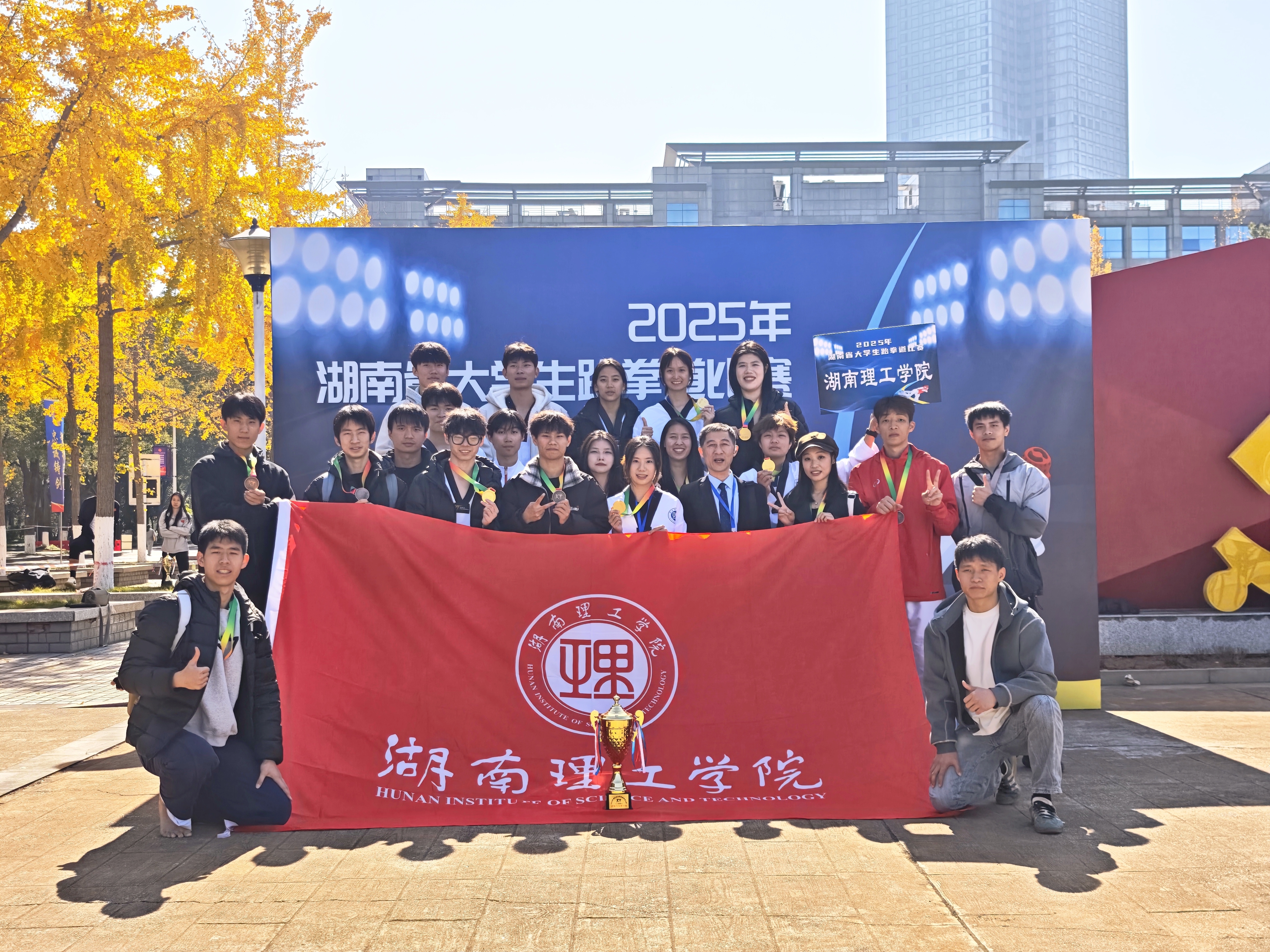校园网讯 11月30日,湖南省2025年大学生跆拳道比赛在湖南警察学院圆满结束。贝博跆拳道队在主教练刘驰聘老师的带队下,斩获7金1银6铜,以92的高分勇夺高校乙组竞技团体总分第一。本次赛事由湖南省教育厅主办、湖南警察学院承办、湖南省学生体育协会协办,全省共58所高校、870名运动员同台竞技。贝博21名跆拳道健儿组成精锐之师出征。赛场上,苏湘荣沉稳应战,姜鸿飞以精准的技巧动作强势上分,李闽奕则用高难度转身后旋击头不断...