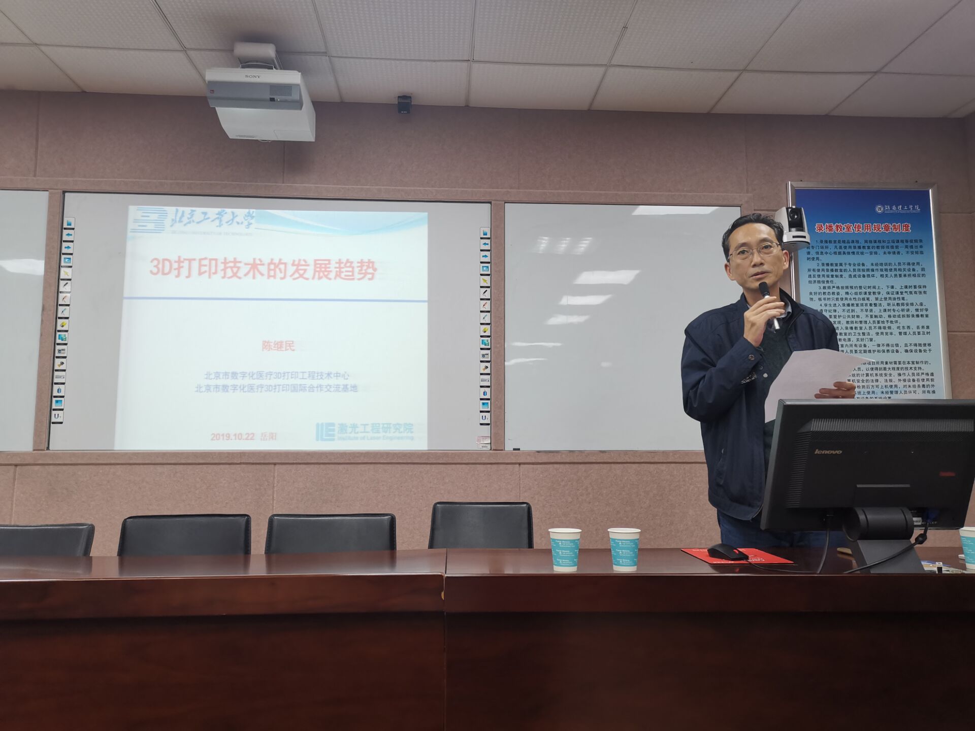 校园网讯 10月22日,机械学院学术讲座《3D打印技术的发展趋势》举行,特邀北京工业大学激光工程研究院教授陈继民为主讲人,院长丁跃浇主持此次讲座,部分本科3D打印爱好者和部分研究生3D打印爱好者参加。