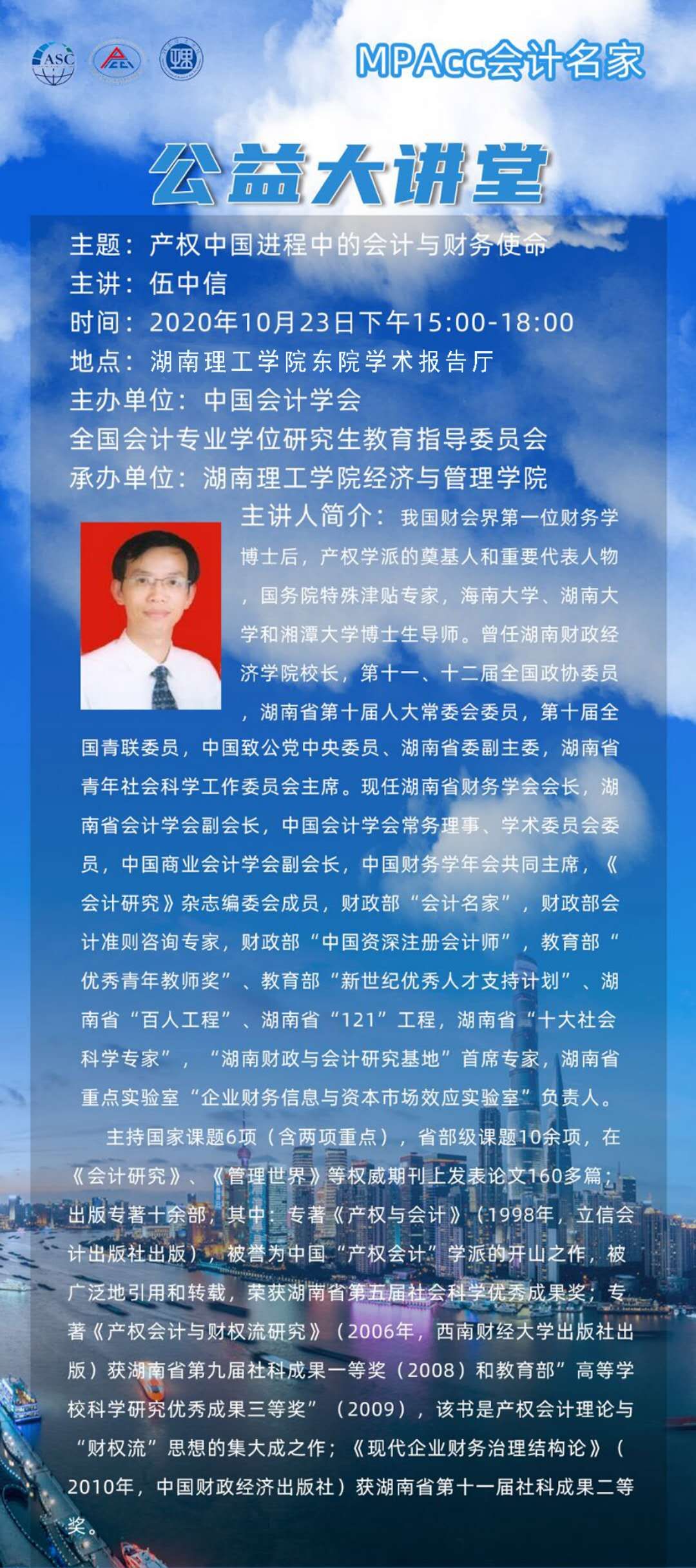 公益大讲堂预告—产权中国进程中的会计与财务使命
