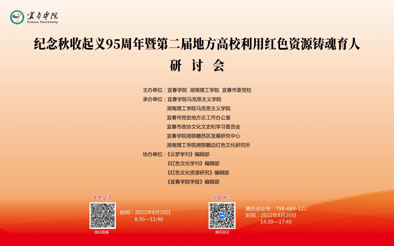 校园网讯为了纪念秋收起义爆发95周年,探讨开发和利用地方红色资源进行大学生思想政治教育,加强地方高校之间合作,8月20日,贝博联合宜春学院、宜春市委党校主办了主题为“纪念秋收起义95周年暨第二届地方高校利用红色资源铸魂育人”的学术研讨会。大会以线上线下相结合的方式进行,线下会场设在宜春学院。